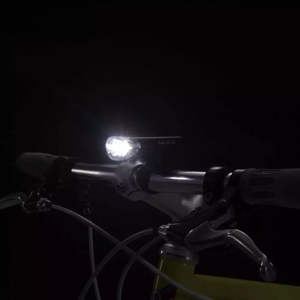 CatEye HL-EL135 er en godkendt forlygte med 3 LED-dioder og et OptiCube-glas i høj kvalitet, der giver en bred og fremragende lysstråle med en lyseffekt på 150 candela. Cykellygten fra CatEye kommer med lysfunktionerne konstant eller blinkede lys, der begge sikrer god synlighed i trafikken. CatEye HL-EL135 kommer i farven sort, og den bruger desuden 2 stk. AA-batterier, der følger med.